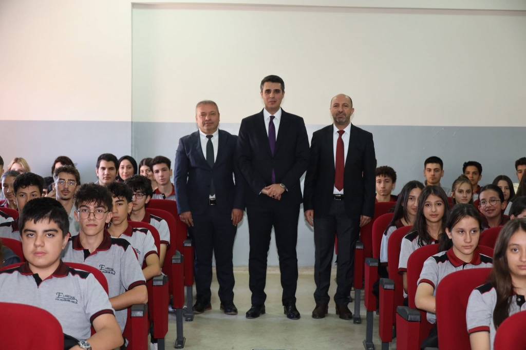 İlçemiz Kaymakamı Sayın Muhammet Fatih DEMİREL 02.10.2025 Perşembe günü saat 09.30`da okulumuzu ziyaret ederek okulumuz konferans salonunda öğrencilerimizle söyleşi yaptı. Okulumuzu ziyaretinden dolayı İlçemiz Kaymakamı Sayın Muhammet Fatih Demirel' e teşekkür ederiz.